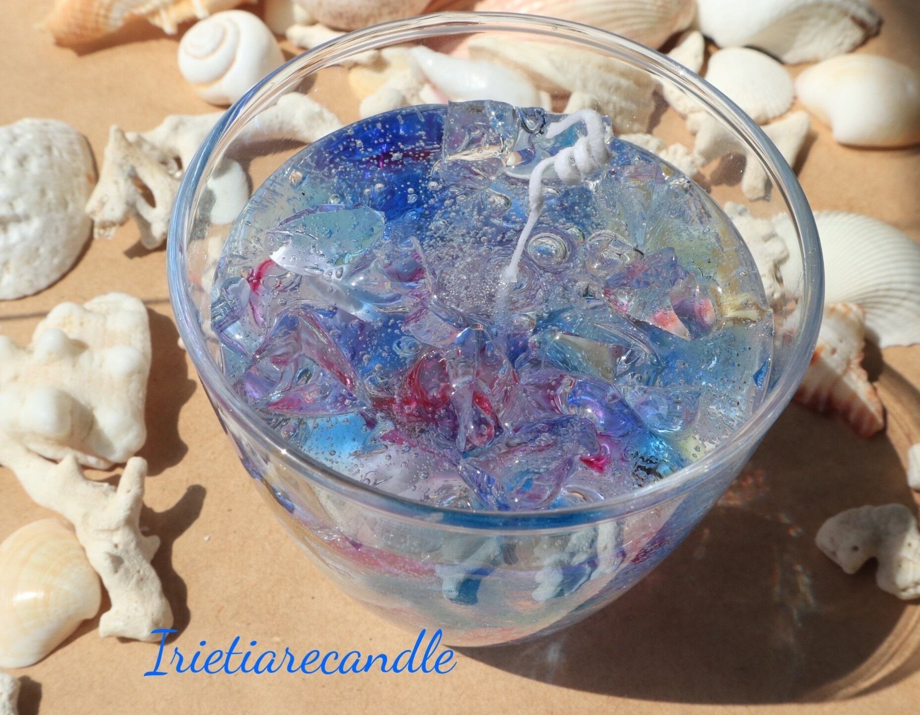 気泡を沢山入れたジェルキャンドルです。